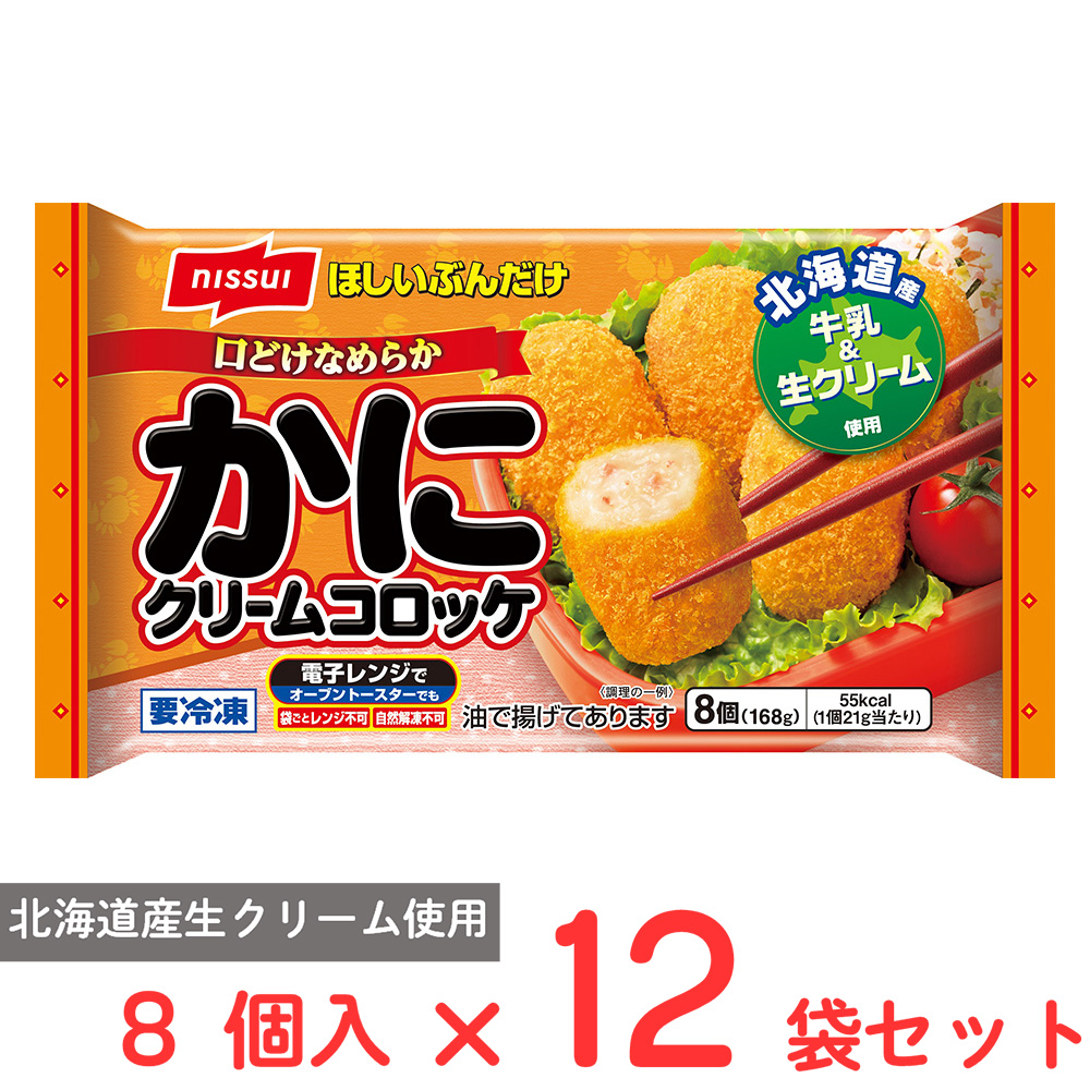 かに、小麦粉、植物油脂、たまねぎ、脱脂濃縮乳、バター、砂糖、ショートニング、ワイン、クリーム、ゼラチン、牛乳、粉末卵白、かにエキス、繊維状植物性たん白、かにエキスパウダー、ブイヨン、食塩、ミルク風味パウダー、たん白加水分解物、香辛料、えびエキス、衣〔パン粉(国内製造)、小麦粉、ファットスプレッド、デキストリン、粉末状植物性たん白、食塩、粉末卵白、大豆粉、植物油脂〕、揚げ油(パーム油)/加工でん粉、トレハロース、調味料(アミノ酸等)、乳化剤、着色料(紅麹、カロチノイド)、香料、酸味料、香辛料抽出物、(一部にえび・かに・小麦・卵・乳成分・大豆・鶏肉・ゼラチンを含む)