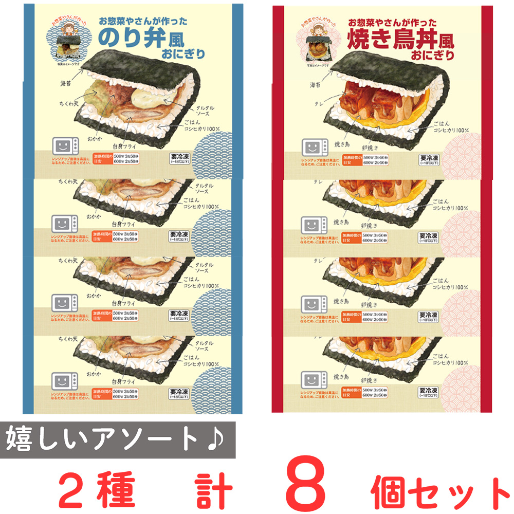 [冷凍] シノブフーズ お惣菜屋さんが作った おにぎり 2種類X各4個 セット ( のり弁風 焼き鳥丼風 )