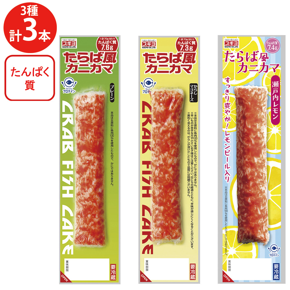 [冷蔵] スギヨ たらば風カニカマ 3種全3本セット(プレーン・からしマヨネーズ・瀬戸内レモン)