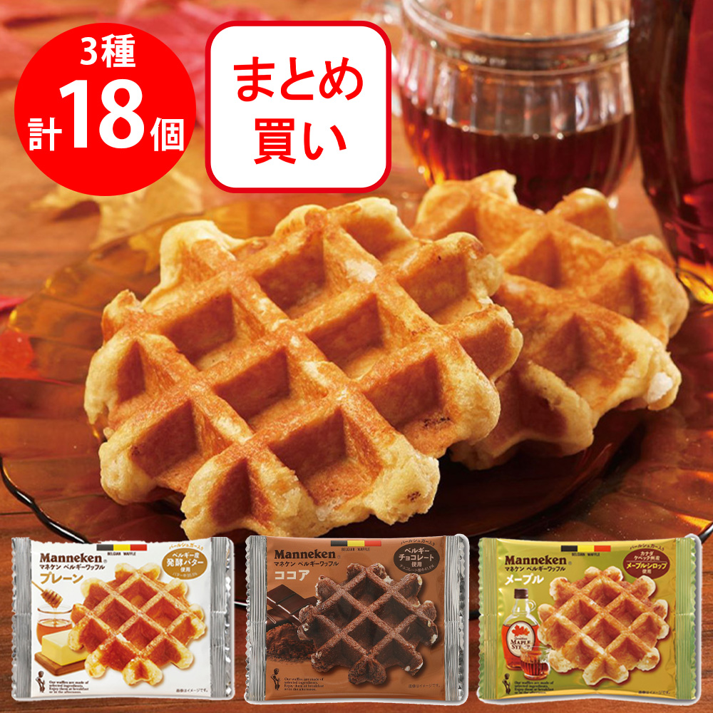 マネケンワッフル3種セット(各6個計18個)個包装 プレーン ココア メープル