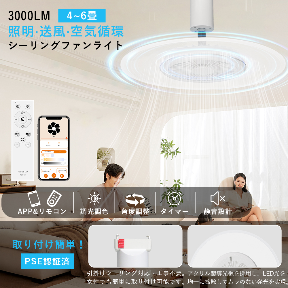 シーリングファンライト ファン付き照明 扇風機 扇風機付き照明 サーキュレーターライト シーリングライト 天井照明 ファン付きシーリングライト 照明器具 LEDシーリングライト LEDライト LED電球 LED天井ライト プロペラ照明 4.5畳 6畳 8畳 10畳 12畳 シーリングファンライト 静音 ファン付き照明 LED 天井 扇風機 ライト サーキュレーター 照明 スマート照明 ファン 寝室 ファンライト LED ファン 天井 畳数対応 畳数目安 畳用 畳対応 小部屋 中部屋 大部屋 リモコン付き リモコン操作 スマホ操作 スマートフォン対応 アプリ操作 スマート家電 音声操作 音声コントロール スマートスピーカー対応 タイマー機能付き 自動オフ APP対応 調光 調色 無段階調光 昼白色 電球色 明るさ調整 DCモーター 静音 強風 弱風 取り付け簡単 引掛シーリング対応 軽量設計 コンパクト設計 省エネ エコ 節電 風量切替 工事不要 引っ掛け対応 引掛けシーリング E26対応 簡単設置 天井取付 薄型 小型