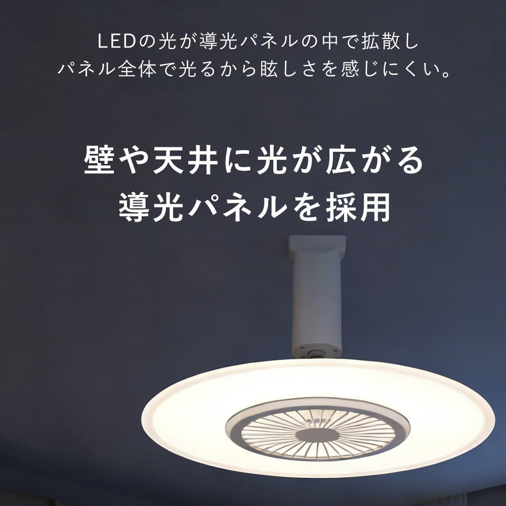 多機能リモコン付属シンプルで使いやすいリモコンを付属。小さすぎず大きすぎない手にフィットするサイズで、照明や風量などの操作を快適に行えます。