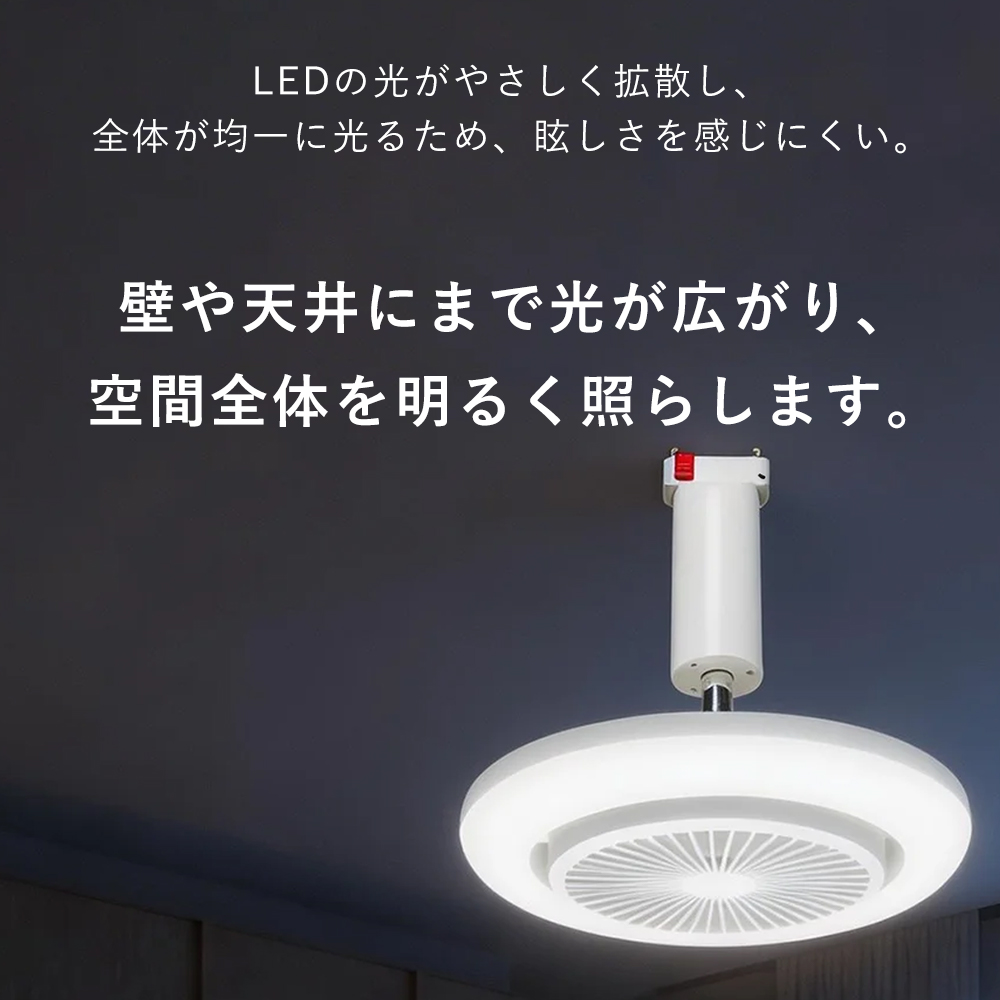 省スペースで快適空間照明と送風の機能を1台に集約したシーリングファンライト。天井設置タイプなので、部屋全体に明るい光と心地よい風を効率よく届けます。床置きファンが不要になり、お部屋はすっきり広々。小さなお子様やペットがいるご家庭でも、安心してお使いいただけます。