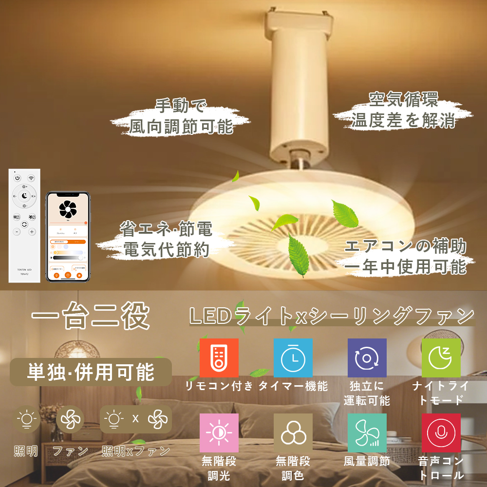 2026モデル シーリングファンライト LED リモコン付き 調光調色 Wi-Fi対応 引っ掛けシーリング 静音 節電 天井照明 スマホ操作 タイマー 常夜灯 角度調整 Alexa