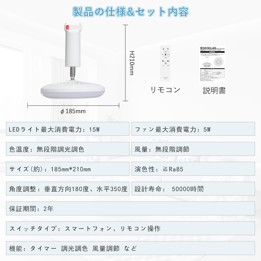 ■商品名:LEDシーリングファンライト(首ふり・回転:手動調整)