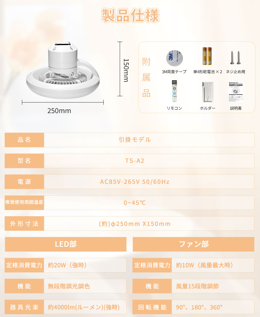 ●消費電力:ファン10W + ライト20W