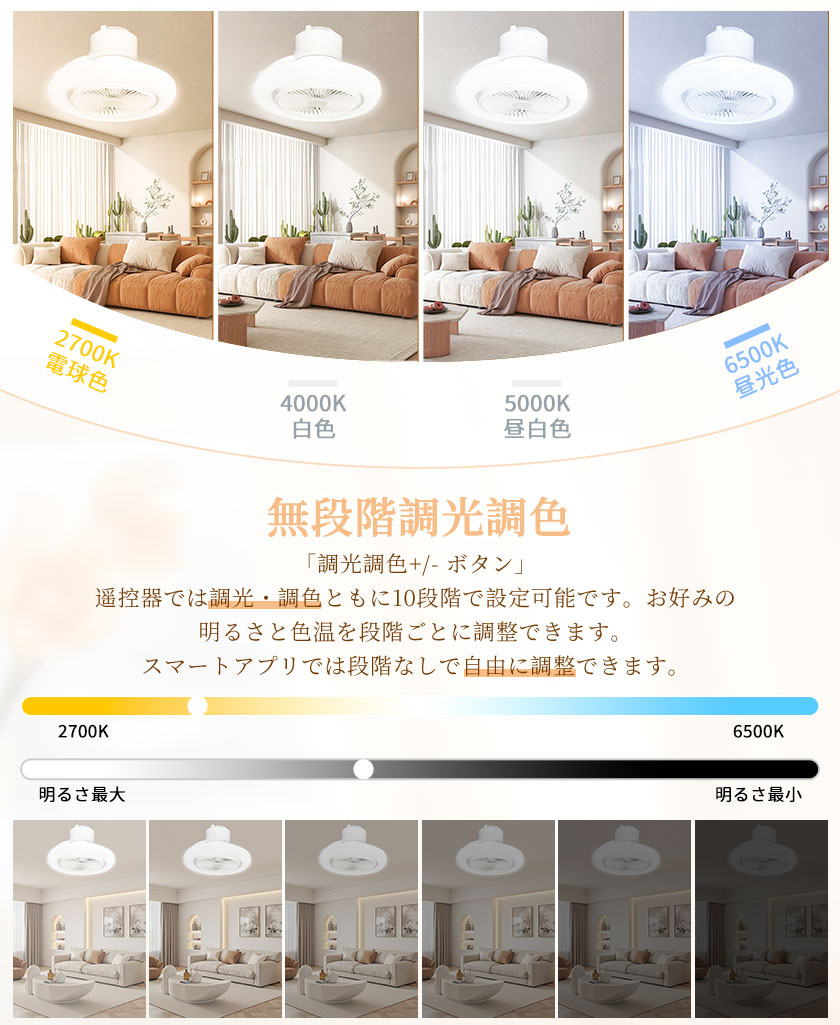 色温度無段階調色:2700K電球色-6500K昼光色
