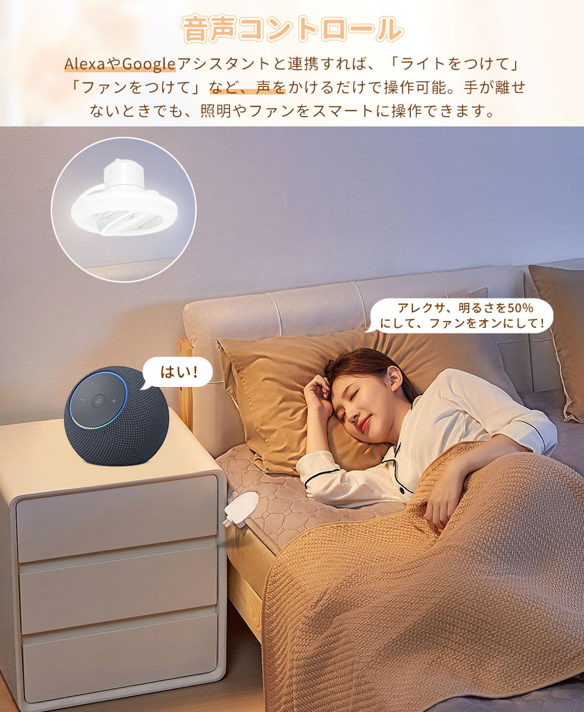 声で操る、洗練された快適さGoogle Home・Amazon Alexa対応。声をかけるだけで照明や風量を調整でき、手がふさがっている時やリラックスタイムにもストレスフリー。スマートホームならではの、上質で快適な操作体験を実現します。