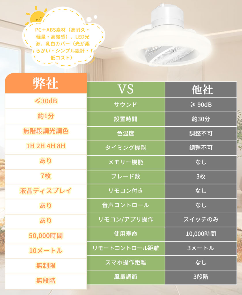省エネ設計、長時間使ってもお得LEDライトと省エネDCモーターを搭載しているため、電力消費を抑えつつ明るさと風量をしっかり維持。長時間使っても電気代を気にせずに、快適な環境を保ちます。