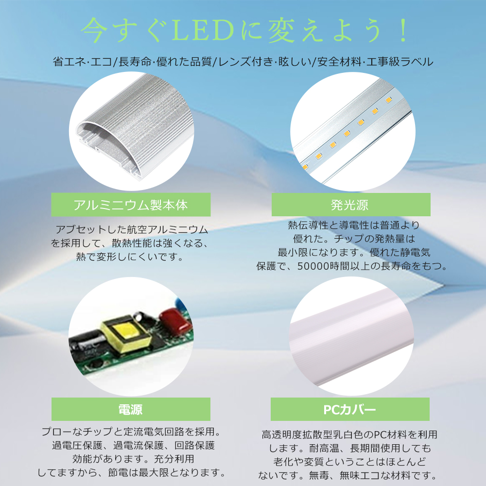 | 【環境に優しい】 | LEDは水銀を含まないため有害な物質を排出せず、環境にやさしいエコな照明器具です。 |