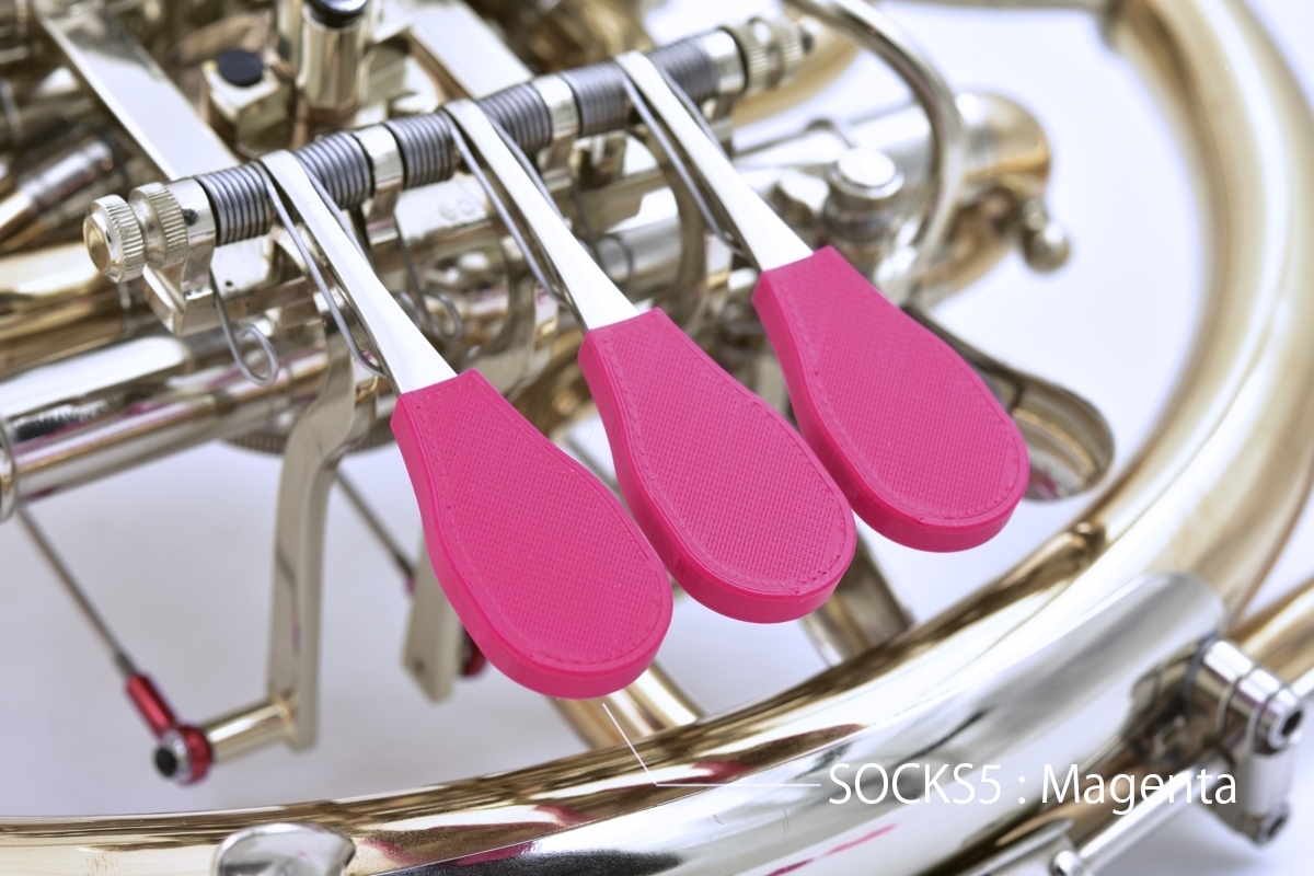 【対象者】※このような問題で困っている方・レバーが滑ってしまう・手が小さくて指が届きづらい(SOCKS5、SOCKS10)・ラッカーが剥がれてしまったレバーの傷隠し・マイ楽器を自分の好きな色にカスタマイズ・金属アレルギーによる指先の手荒れの防止【脱着方法】※工具不要装着:カバーの丸いほうの溝にレバーをはめ、カバーの細い方を押し込む脱着:カバーの細い方の裏側、2つあるツメのマウスピース側をゆっくりと押し込む※積層方向の力に弱いので、脱着の際にツメ部分を無理に開かないでください。※レバーには製造時の個体差や、使用時の歪み等があります。カバーの装着後、ぐらつきがある場合は本製品とレバーの間に薄手の両面テープを貼るなどして固定してください。