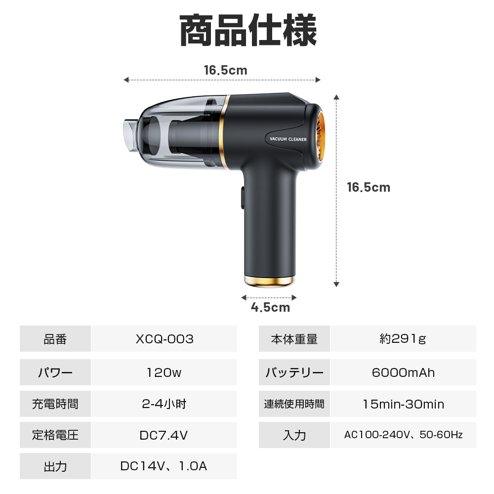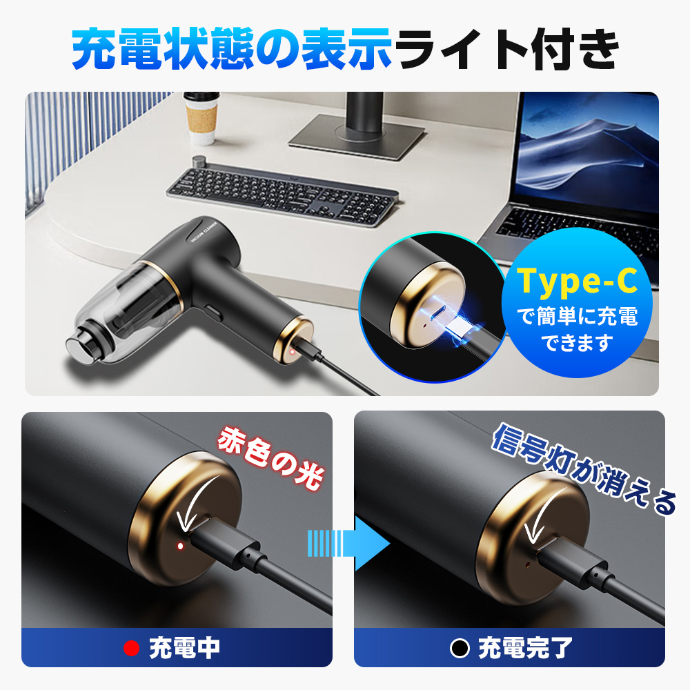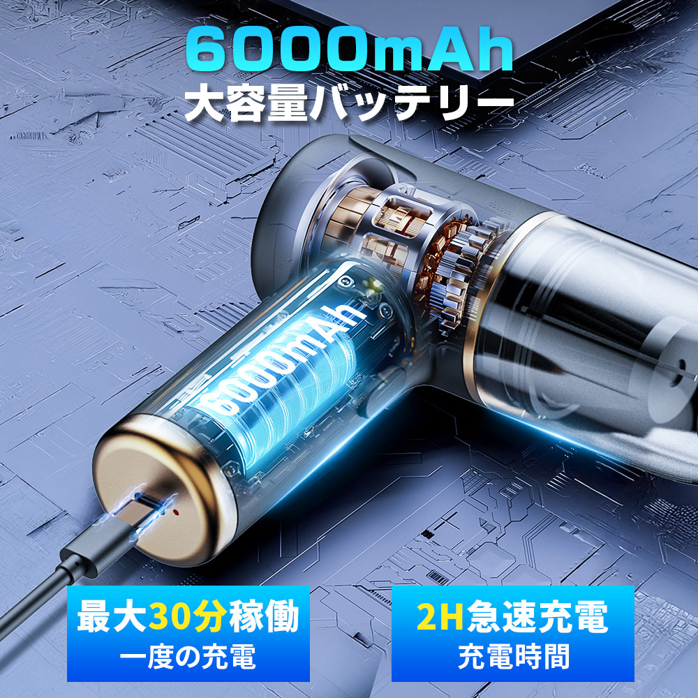 ハンディクリーナーが6000mAh大容量バッテリーを内蔵し、連続30分作動できる!(ご注意:充電中が使用できません)