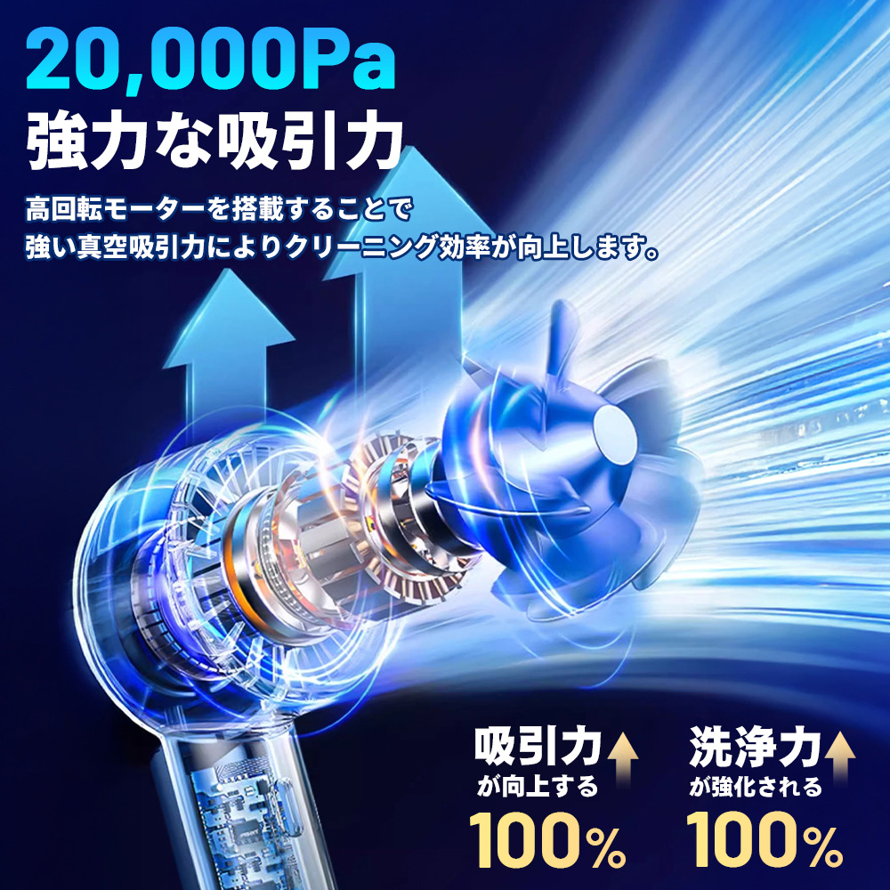 パワフル20000PAの強吸引力でゴミをを逃さずスッキリ清潔に!