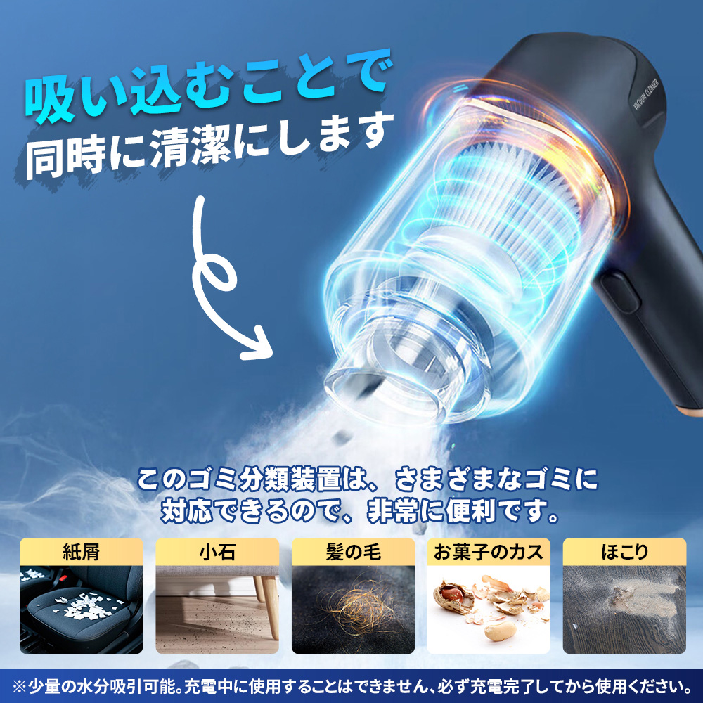 ハンディクリーナー コードレス ハンディ掃除機車載掃除機 カークリーナー ミニ掃除機 車用掃除機 強力 掃除機 静音 <50dB 軽量 291g 込み&吹き両用