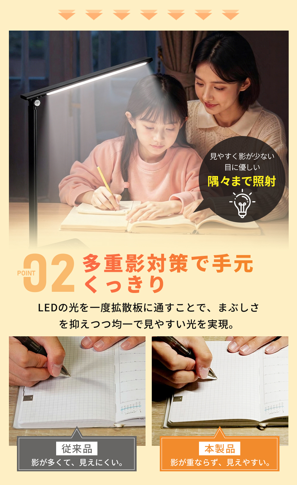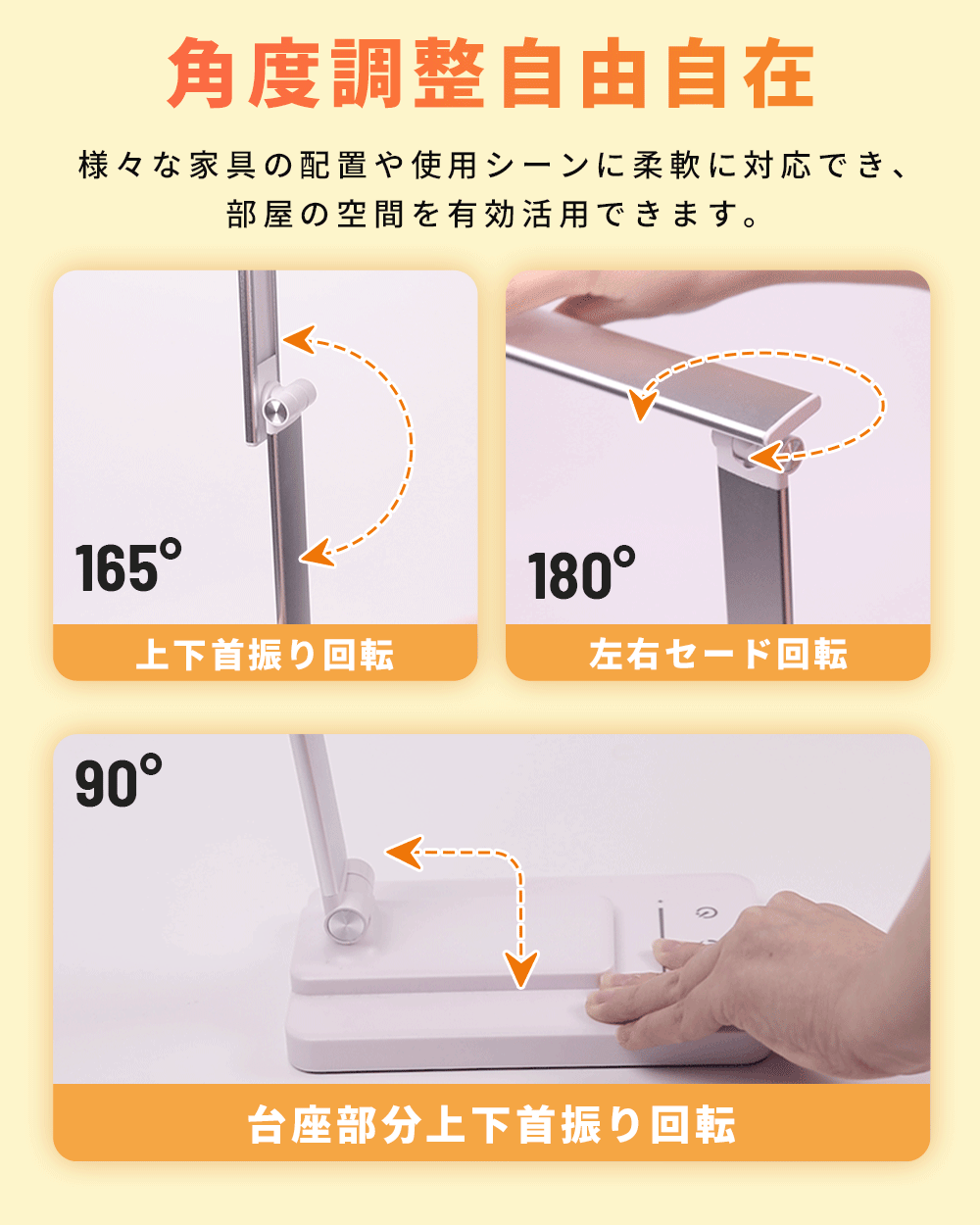5種の色温度調節、多彩な色でお好みでお選べます。角度に自由に調整でき、収納しやすい。