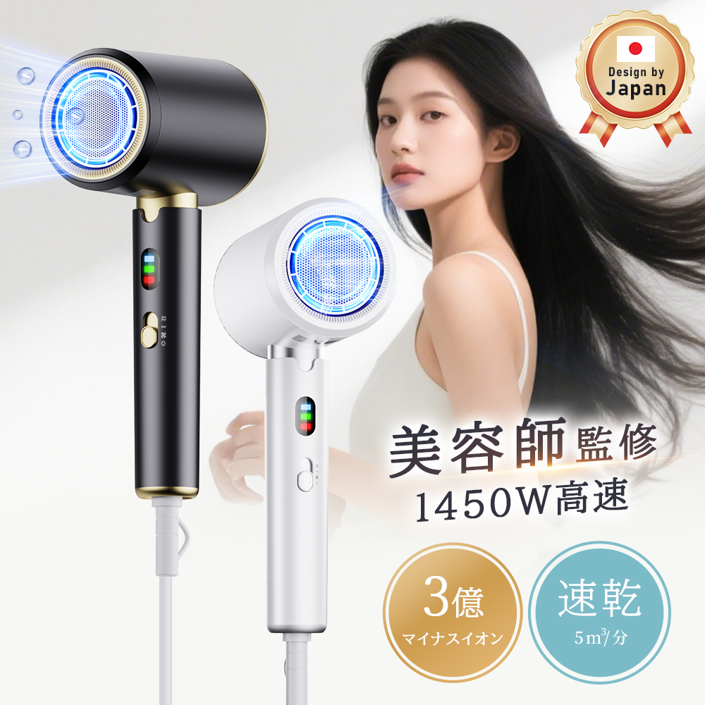・最強1450W大風量で、ドライ時間を大幅カット!65m/s大風量でも髪に損害しません!