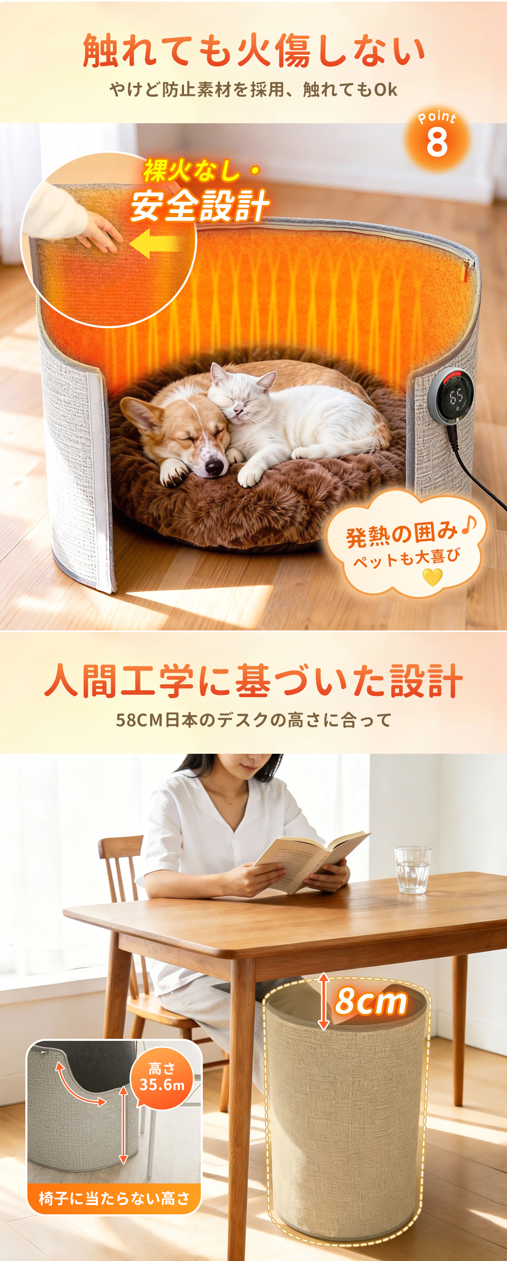 必要な部分だけを効率よく暖める省エネ設計。電気代を抑えながら快適にご使用いただけます。
