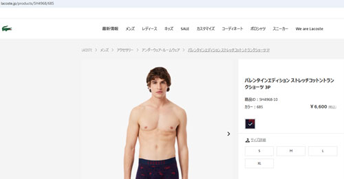 ・コットン×ポリウレタンのストレッチジャージ素材 ・バレンタインデザインのハート×ワニロゴ柄1枚と無地2枚の、3枚セット ・コントラスト配色のブランドネームロゴ入りウエストバンド ・ピッタリと全身にフィットするカッティング ・右裾脇にワニロゴパッチを配置
