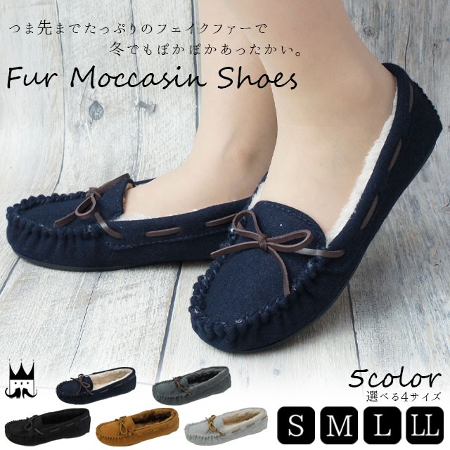 レディース モカシン ファー 6272 フラットシューズ フェイクファー 黒 キャメル グレー ネイビー