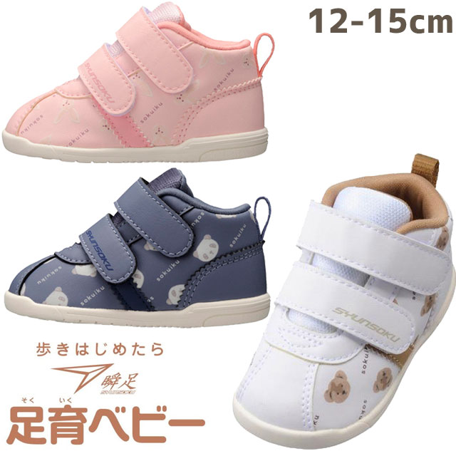 シュンソク ベビーシューズ 瞬足 男の子 スニーカー 女の子 子供靴 キッズ 足育ベビー ローカット ベルクロ キッズ パンダ うさぎ くま ネイビー SJB 0400