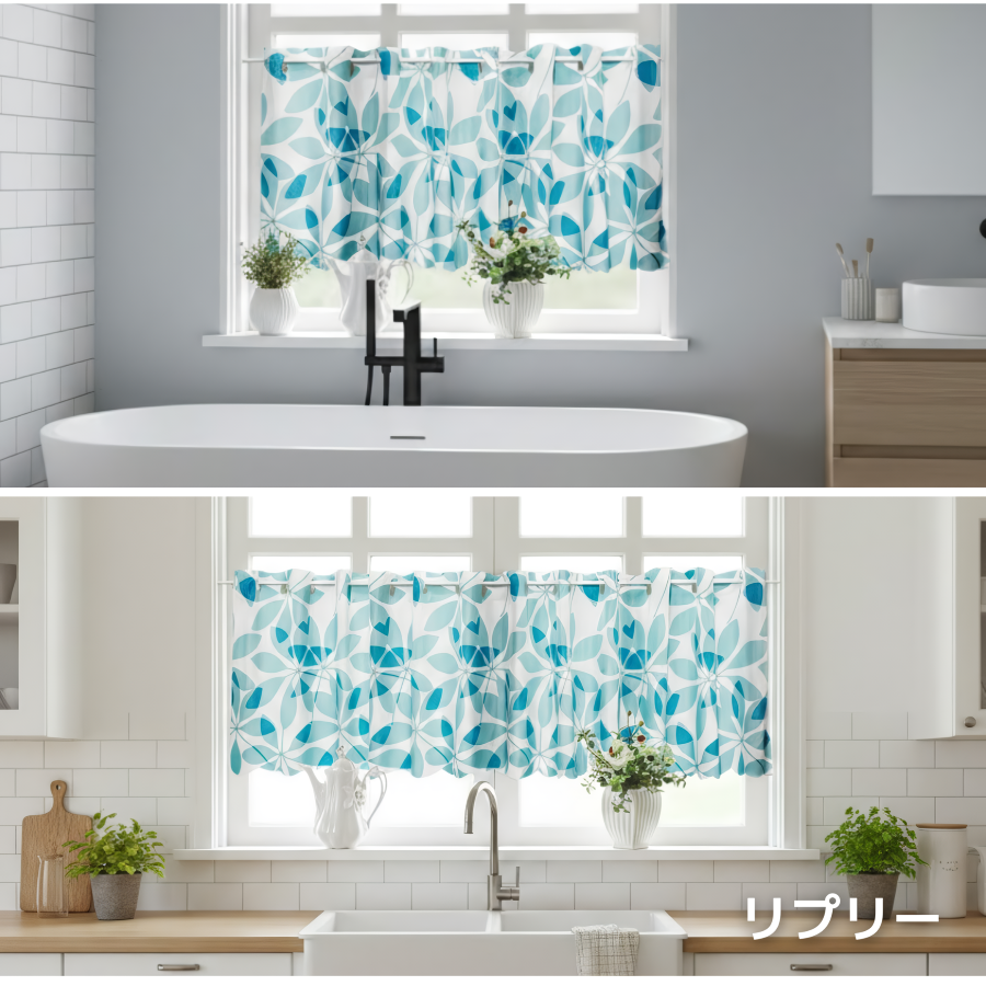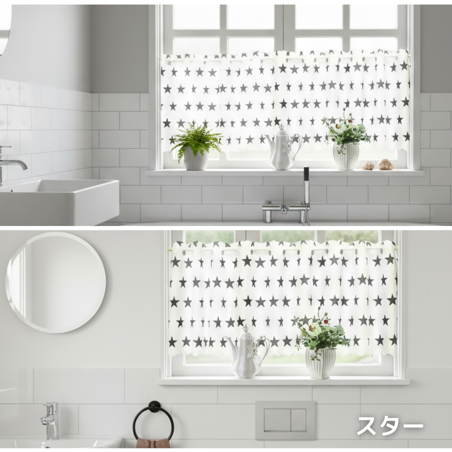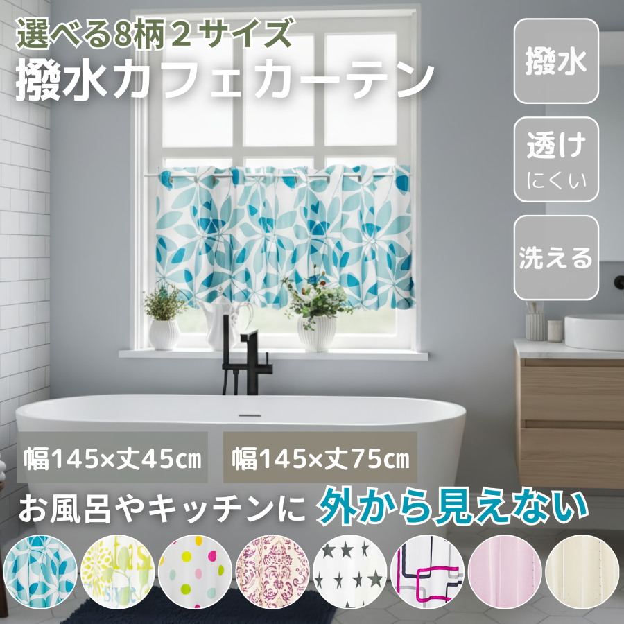カフェカーテン 撥水 外から見えない 浴室用 おしゃれ 北欧 柄 はっ水 小窓 お風呂 トイレ 目隠し 透けにくい 丈 45cm 75cm 145幅 かわいい