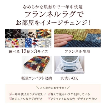 特徴: あったか素材のフランネルラグ ウォッシャブル ノンスリップ付き