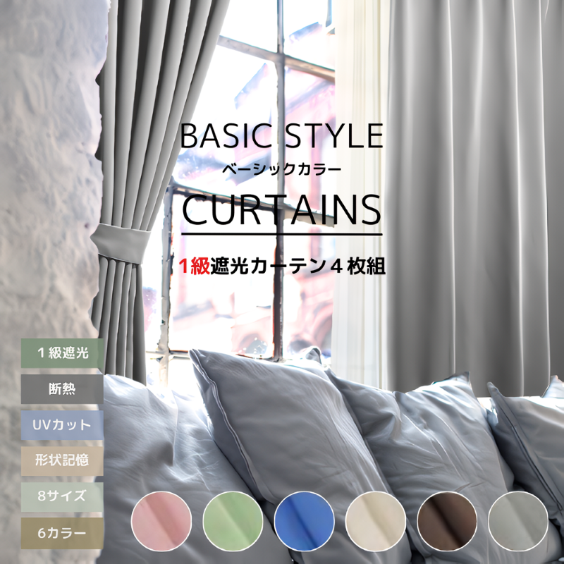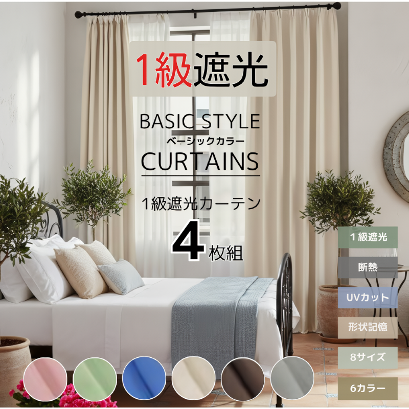 遮光 1級 4枚セット 4枚組 無地 1級遮光 遮光カーテン 洗える UVカット