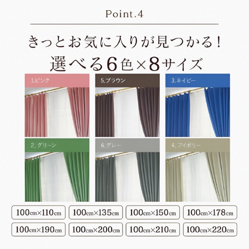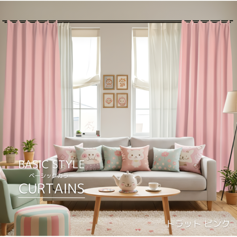 内容: 厚地カーテン2枚+レース2枚、タッセル2点