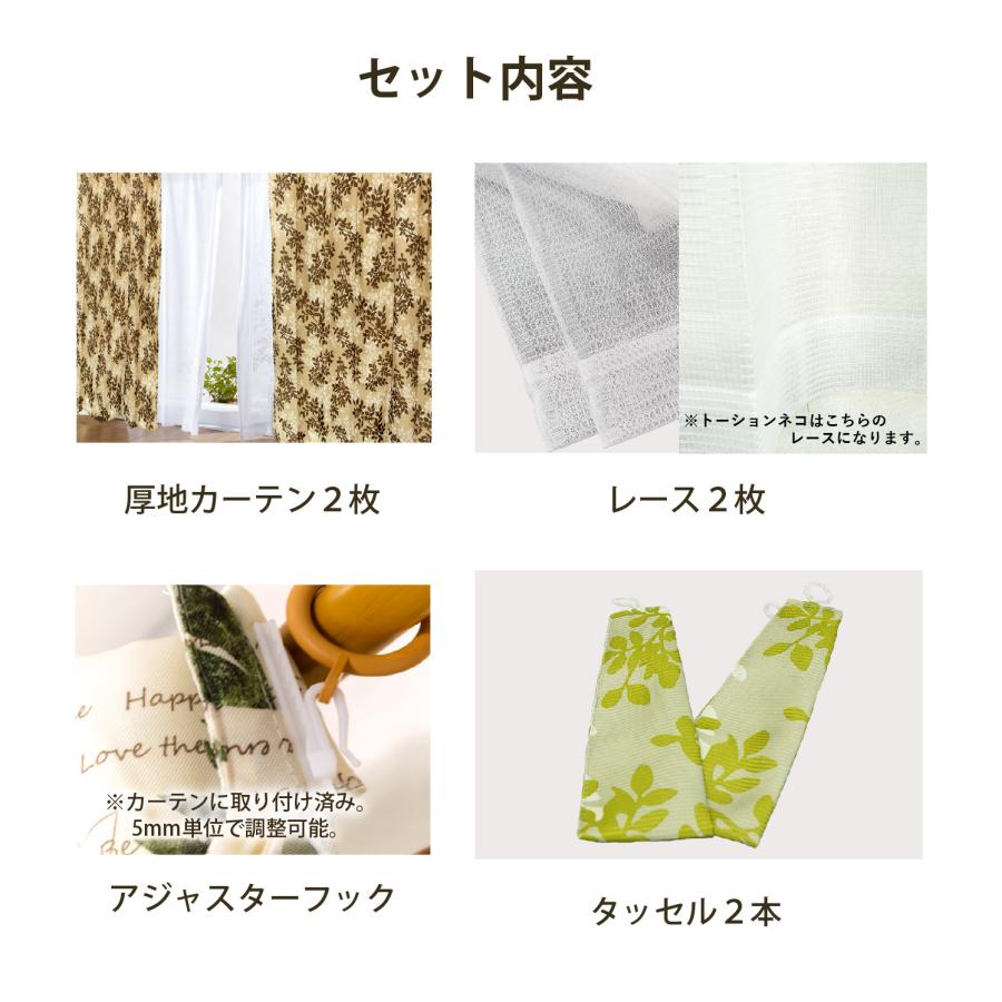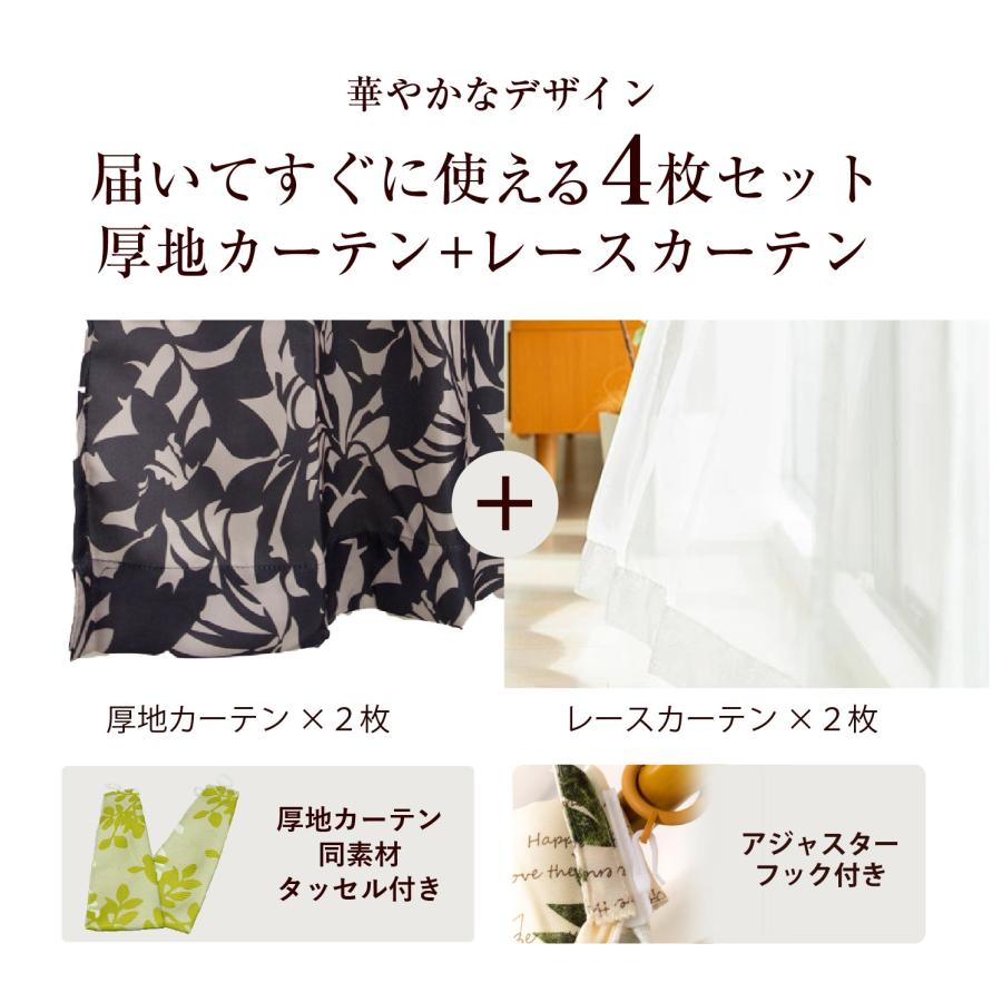 カーテン 4枚セット 4枚組 非遮光 厚地 ミラーレース 洗える おしゃれ 一人暮らし おすすめ 間仕切り 花柄 リーフ ボタニカル フラワー 姫系 子供部屋 ドレープ