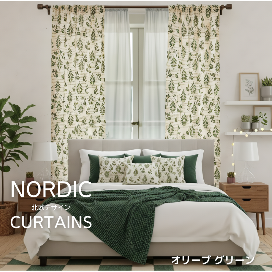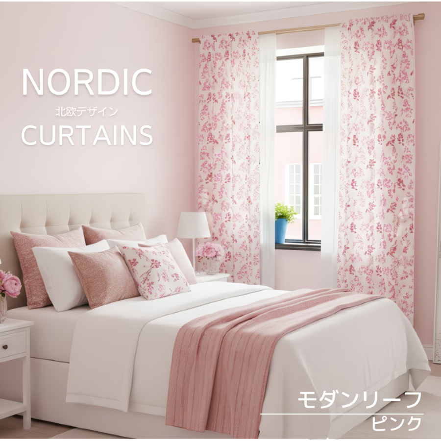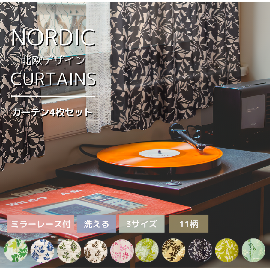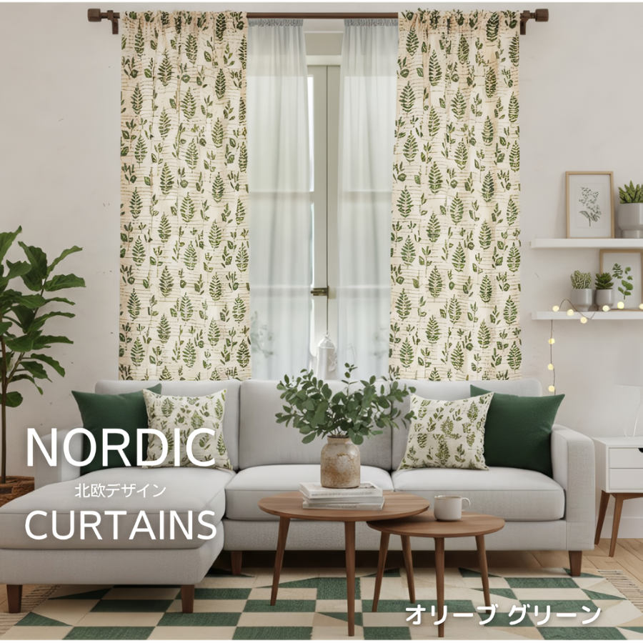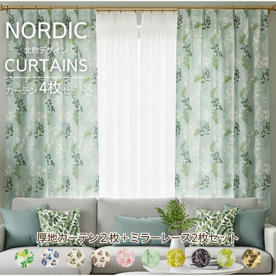 カーテン 4枚セット 安い 北欧 おしゃれ 柄 おすすめ 花柄 リーフ 4枚組