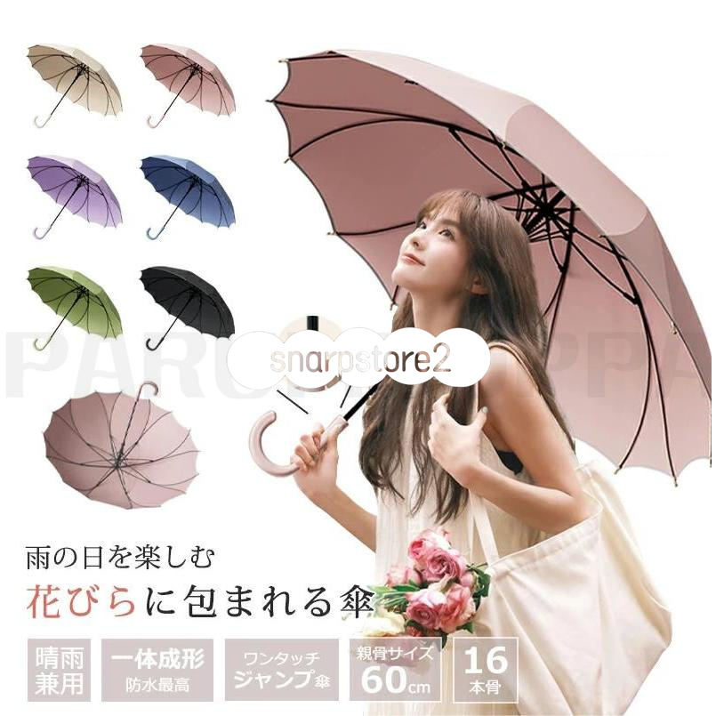 花びら傘 2size選べる傘 レディース 16本骨 雨傘 メンズ ワンタッチ ジャンプ傘 一片式 長傘 長雨傘 和風傘 おしゃれ かわいい 無地 大きい 耐風 丈夫 人気