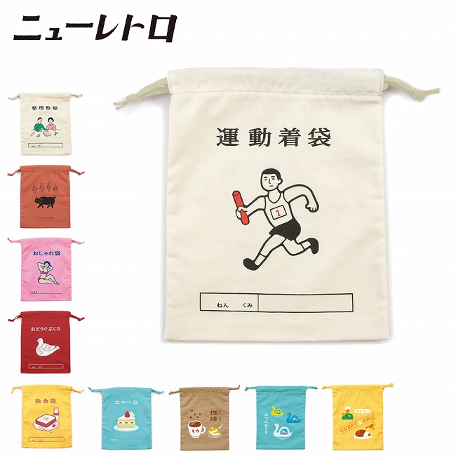 ニューレトロ 巾着袋 GB280 【 収納 カバン ポーチ アウトドア 昭和レトロ 小物入れ おやつ 着替え 上履き 化粧ポーチ 小分け お出かけ 旅行 】【メール便・代引不可】
