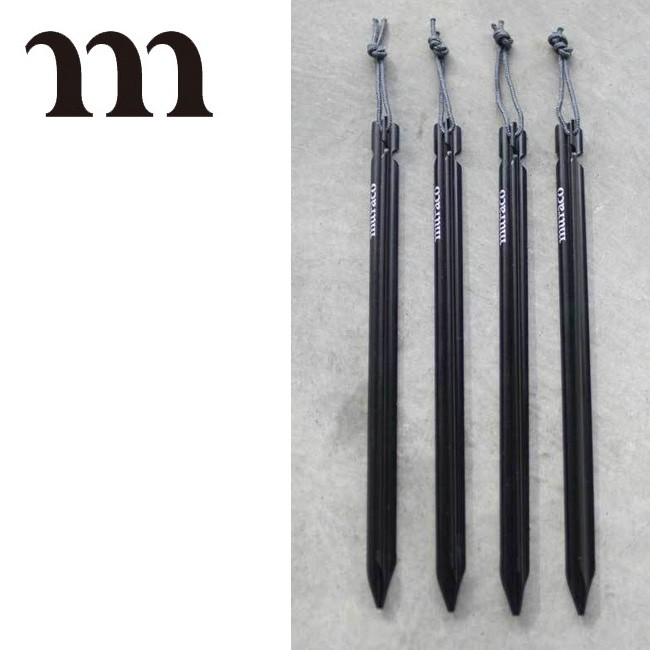 地中の回転や、本体の曲がりを抑えるツイスト形状。 25cmの長さで強力な保持力を持つペグ。 大型のタープやテントの固定に最適です。 【素材】7A04アルミニウム製 黒色アルマイト仕上げ 4本セット