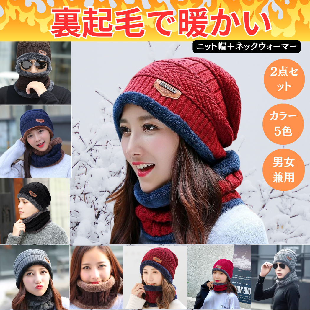 ニット帽 ネックウォーマーセット 安い おしゃれ メンズ レディース コットン 綿 裏起毛 秋冬 防寒