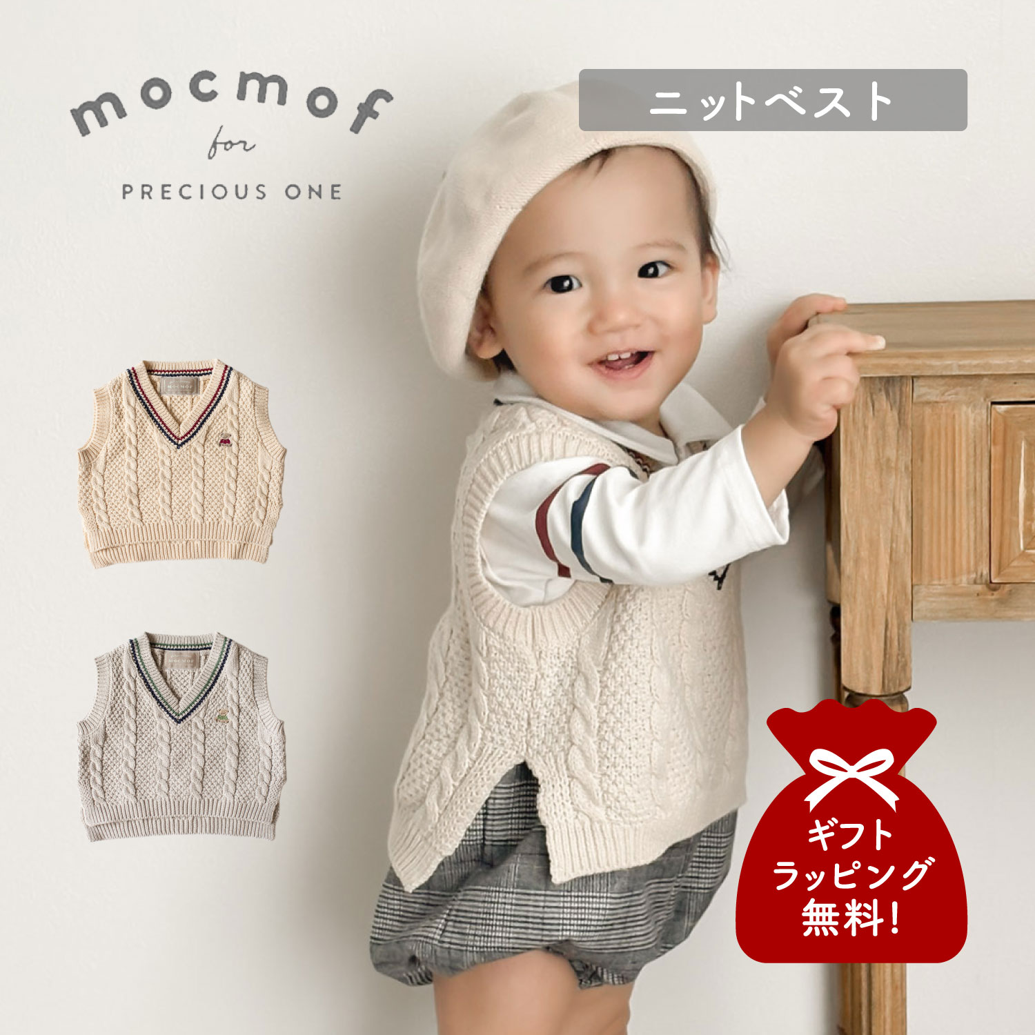 mocmof モクモフ ベビー服 子供服 ニットベスト ベビー キッズ 70-90cm対応 赤ちゃん Vネックニットベスト アイボリー ライト グレー 622-577280