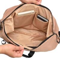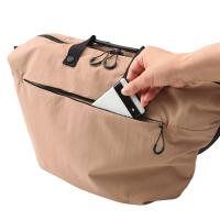 収納力・軽さ・耐水性に優れたミニマルデザインのソフトショルダー。2WAYで手提げバッグとしても使用できます。外装にはすぐ取り出したいものの収納に便利なフロントポケット、ペットボトルや傘を収納できるサイドポケット、背面にはキャリーオンにも対応するファスナーポケットを装備。内装にはメッシュポケットと2つの小分けポケットを搭載し、ミニマルなデザインとは裏腹に使い勝手を考え抜かれたポケットの配置が魅力です。