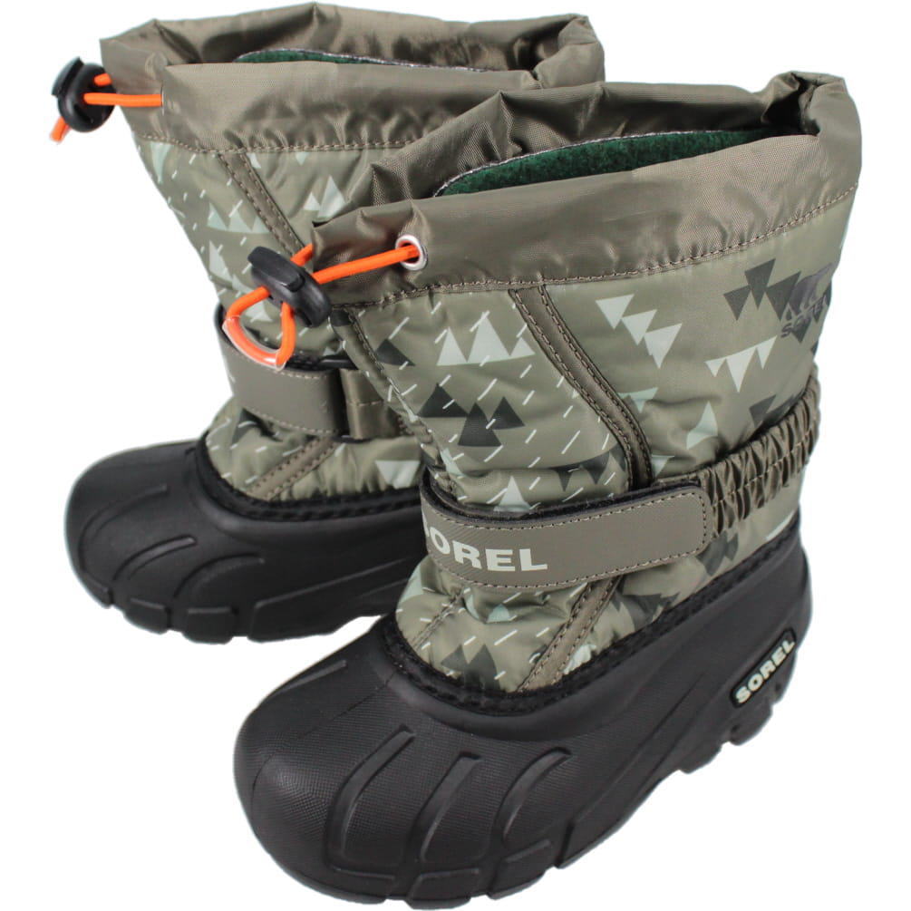 交換送料片道無料 子供 ソレル ブーツ チルドレンズ フルーリー プリント CHIRDRENS FLURRY PRINT ストーングリーン/ブラック NC3504-397