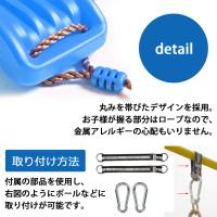 調整可能のフックがついているので、ロープの長さを自由に変えることができます。長めのロープで高いところでも低いところでも使えます。