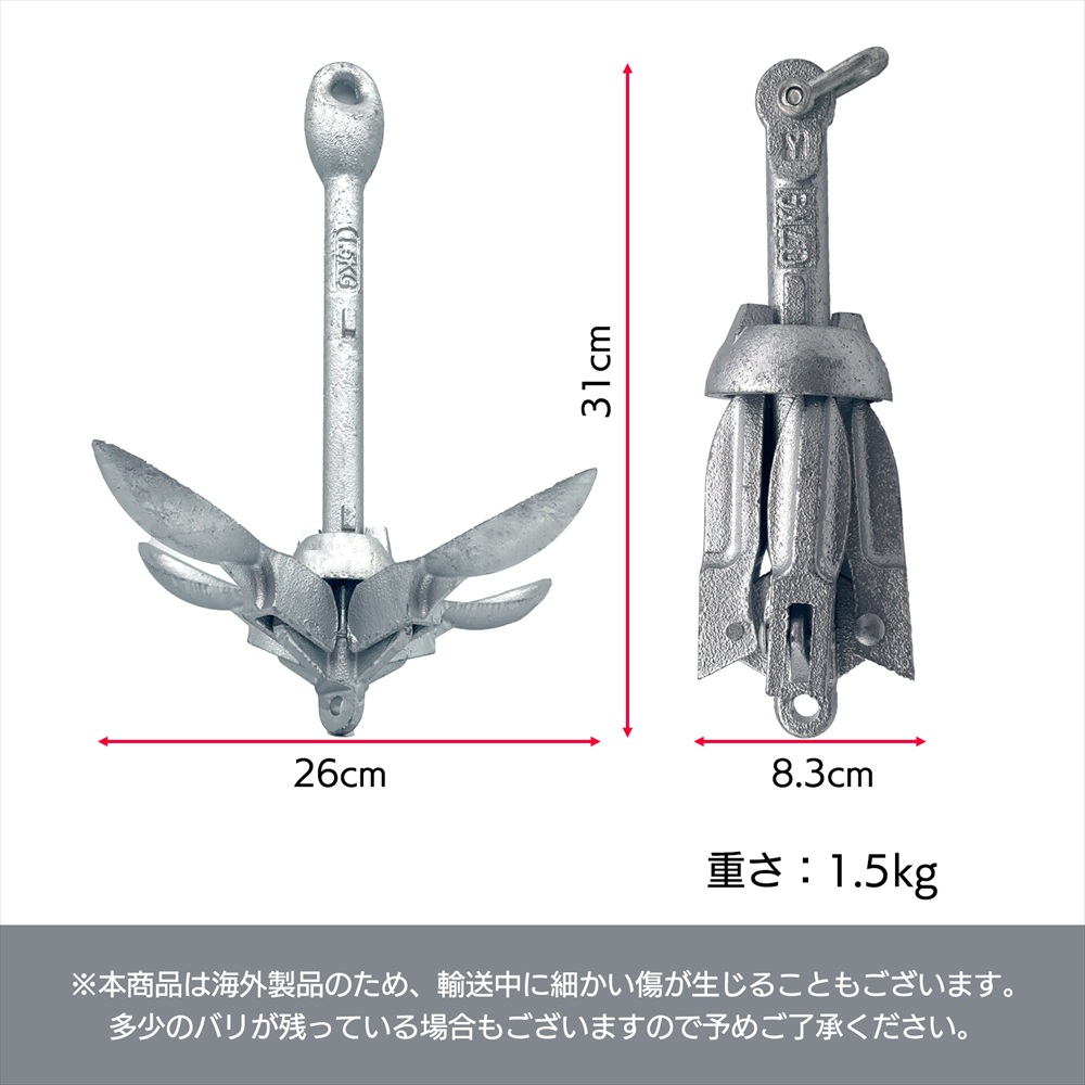 フォールディングアンカー 1.5kg カヤック アンカーボード 釣り SN-381-FA