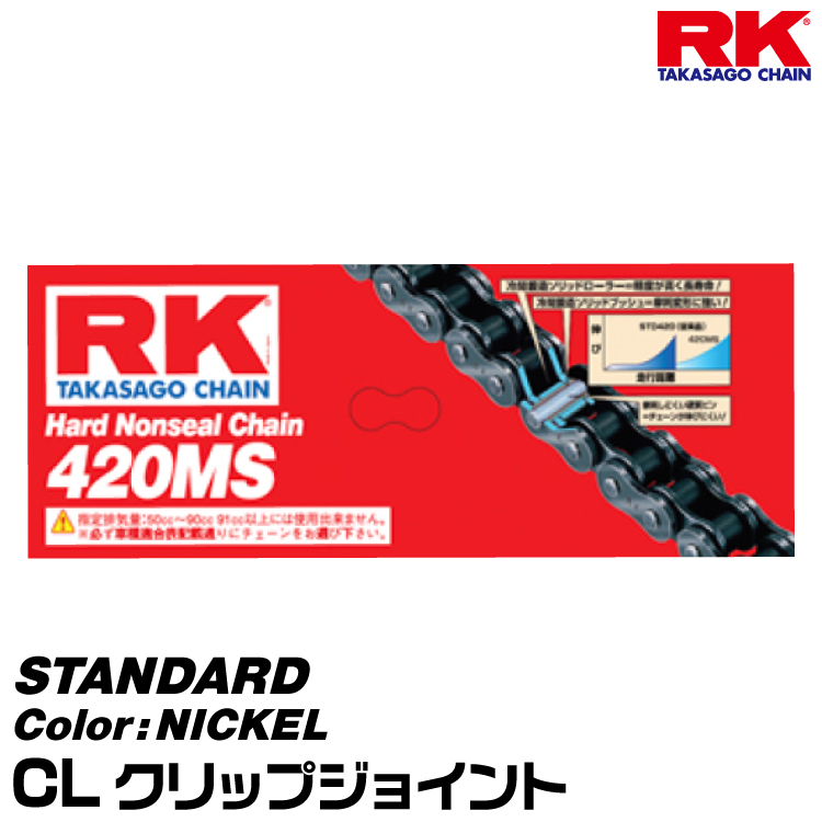 RK ドライブチェーン STANDARD 420MS カラー:NICKEL/CL クリップジョイント/適合排気量 50-125cc[ヤマトネコポス発送]