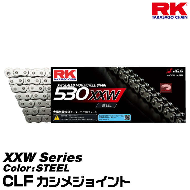 RK ドライブチェーン XXW Series 530XXW カラー:STEEL/CLF カシメジョイント/適合排気量 750-1401cc※2気筒は1700ccまで対応[ヤマトネコポス発送]