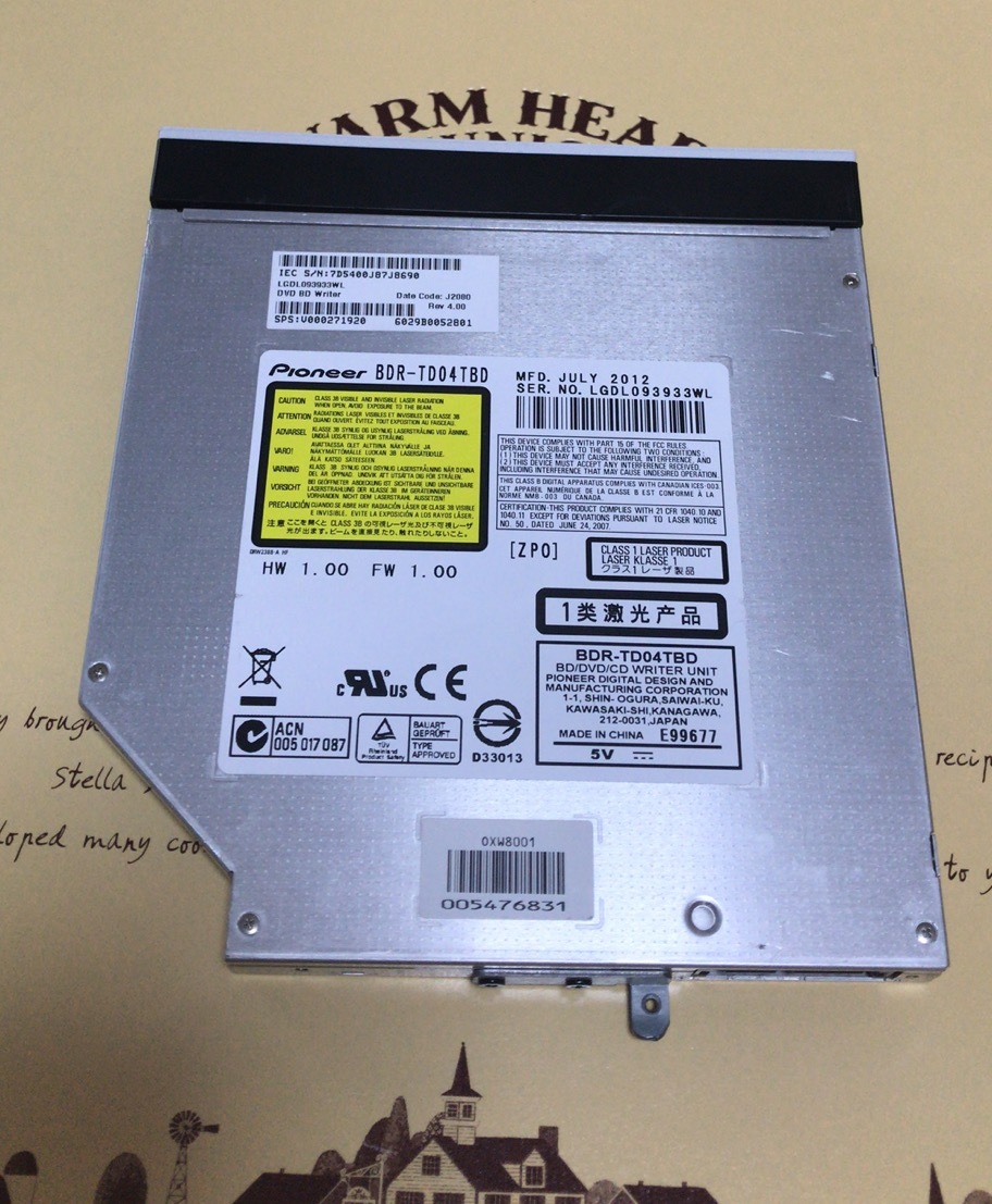 2040359★中古★パイオニア BDXL対応RoHS準拠スリムラインSATA接続 ブルーレイドライブ BDR-TD04TBD 12.7mm ベゼル付き 作動品