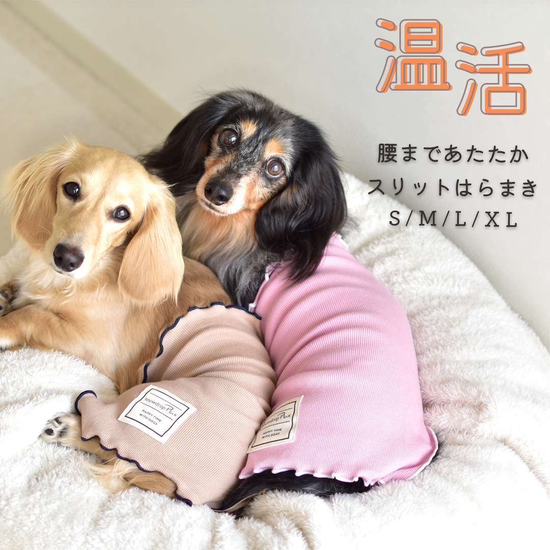 | 商品詳細 | 大人気のはらまきに新しくかわいい仲間が登場! リブ素材の生地に、裾をアクセントカラーでメロー始末し、 シック&かわいく仕上がりました♪ こちらは、お腹側にスリットが入っているので、男の子でもお尻まですっぽり★ のびのびストレッチで優しくフィット// 夏場のエアコン冷えに☆ シニアのわんちゃん、パピーのわんちゃんのデリケートなお腹に。 綿96%ととてもお肌に優しく、術後や傷口の舐め防止にも◎ | | サイズ | 上記画像を参照ください | | 素材 | ・綿 96% ・ポリウレタン 4% | | カラー | ・アイボリー ・ピンク ・ベージュ ・ネイビー |  | | 注意事項 | ※PC画像・光により実物と画像のカラーが異なる事があります、 出来る限り近いお色の物にさせて頂いておりますがご了承下さい。 ※他店販売もしていますので確認・注意はしていますが店頭にて品切れの場合、 キャンセルさせて頂く事があります、御了承下さい。 | DOGサイズ・DOGモデルについて詳しくはこちらから→ | | ゆうパケット | 対応 ゆうパケットについて詳しくはこちらから→ | |