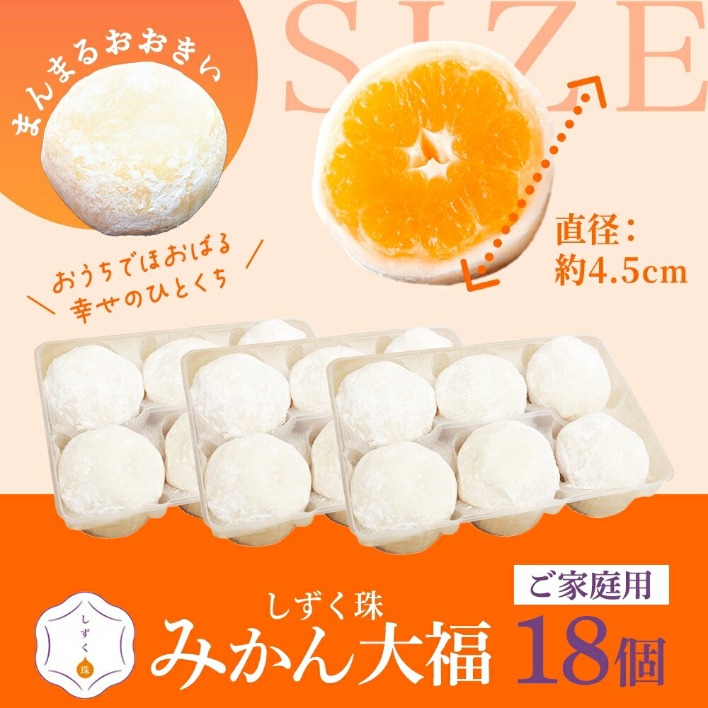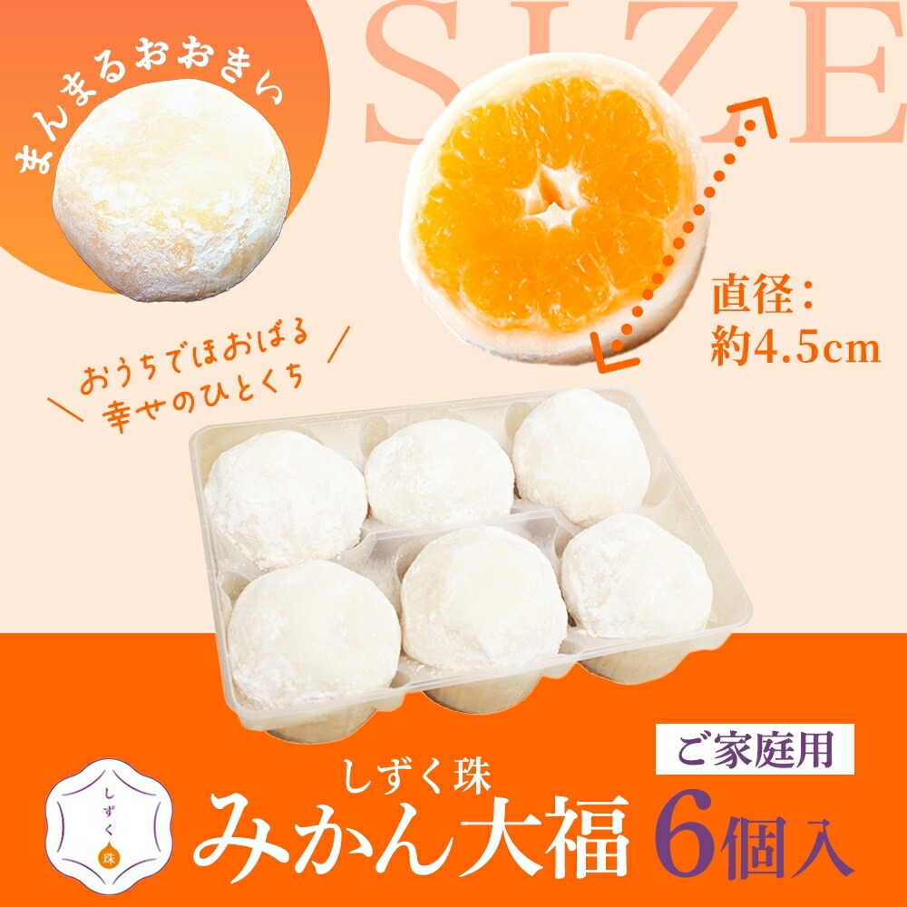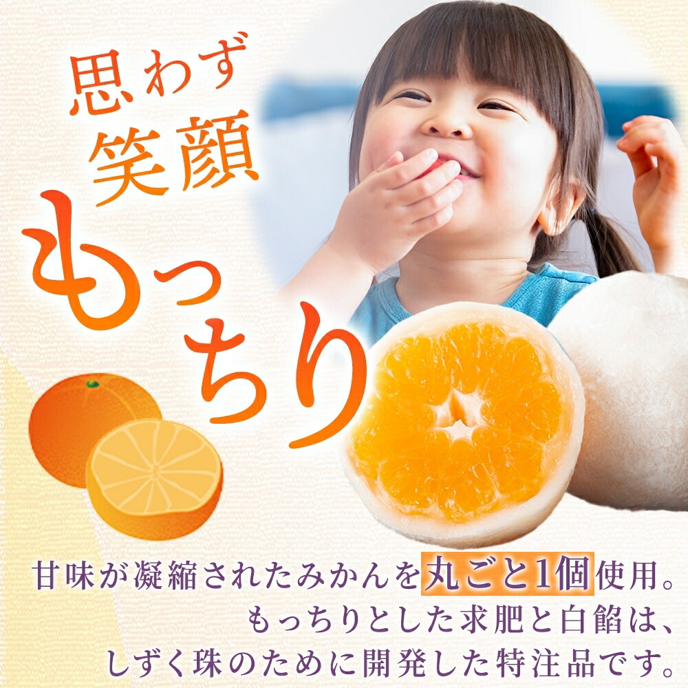 | 商品内容 | ・みかん大福「しずく珠」(6個入) ・みかん大福「しずく珠」(6個入)×2 ・みかん大福「しずく珠」(6個入)×3 |