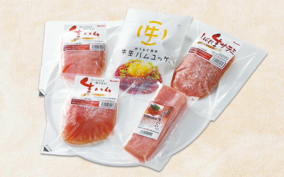 | 商品内容 | しばれ生ハムオードブル 4種セット ・しばれ生ハム スライス(コールドロース) 80g×2個 ・牛生ハムユッケ 56g×1個 ・しばれ生ハム 冊取り 200g×1個 ・しばれ生サラミ 80g×1個 |