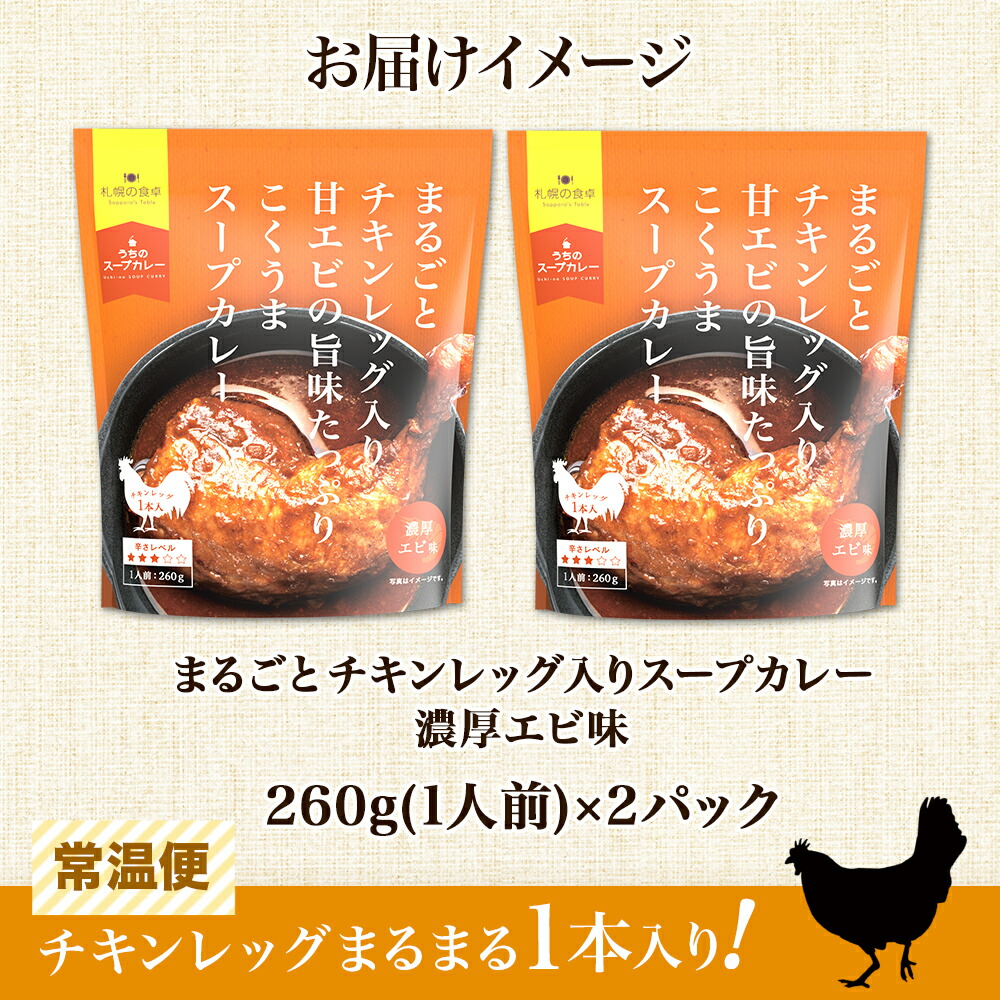 ■商品内容:チキンレッグ入りスープカレー 海老味