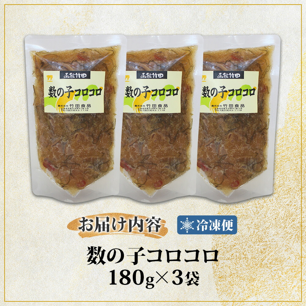 数の子コロコロ 180g 3袋 北海道 数の子 にしん 松前漬け 漬け物 醤油 海鮮 珍味 おつまみ お酒 ギフト 冷凍