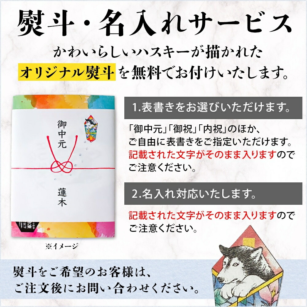 ハスキージェラートでは、ジェラート商品に限り、無料で熨斗(のし)をお付けするサービスをご提供しています。