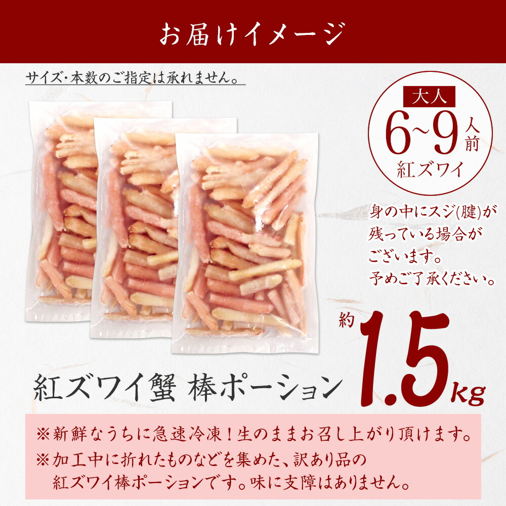 カニ 訳あり 北海道産 紅ズワイ棒ポーション 1.5kg かに ギフト 紅ズワイガニ 蟹 むき身 カット済 剥き身 刺身