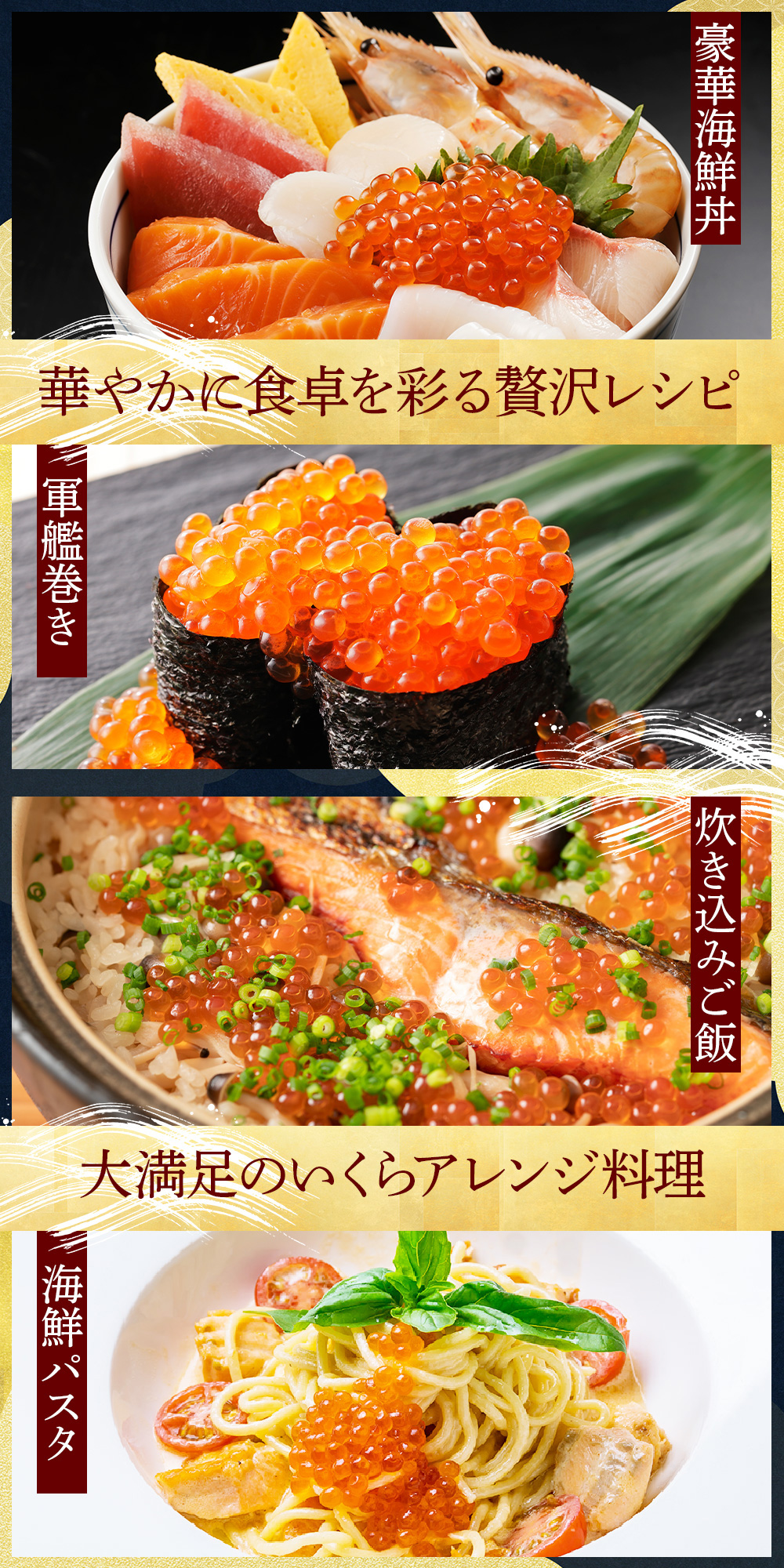 海の恵みをギュッと閉じ込めた北海道産いくら醤油漬けは、特別な日の食卓や贈り物に最適。口いっぱいに広がるプチプチ食感と豊かな旨味をぜひご堪能ください。